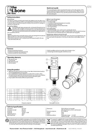 A moving coil capsule converts sound waves to electric signals. Dynamic capsules like the MB 7 Beta are very robust and handle very high sound pressure levels without distorting. The cardioid polar pattern picks up sound from the front and rejects sound from the back. This reduces unwanted noises when podcasting or doing voice-overs, spill from other instruments when recording, and feedback when using the t.bone MB 7 Beta live on stage. Electromagnetic shielding safeguards the microphone output signal from electromagnetic interference like mobile phones. So not only the looks and the sound but the overall performance of the MB 7 Beta are truly professional.